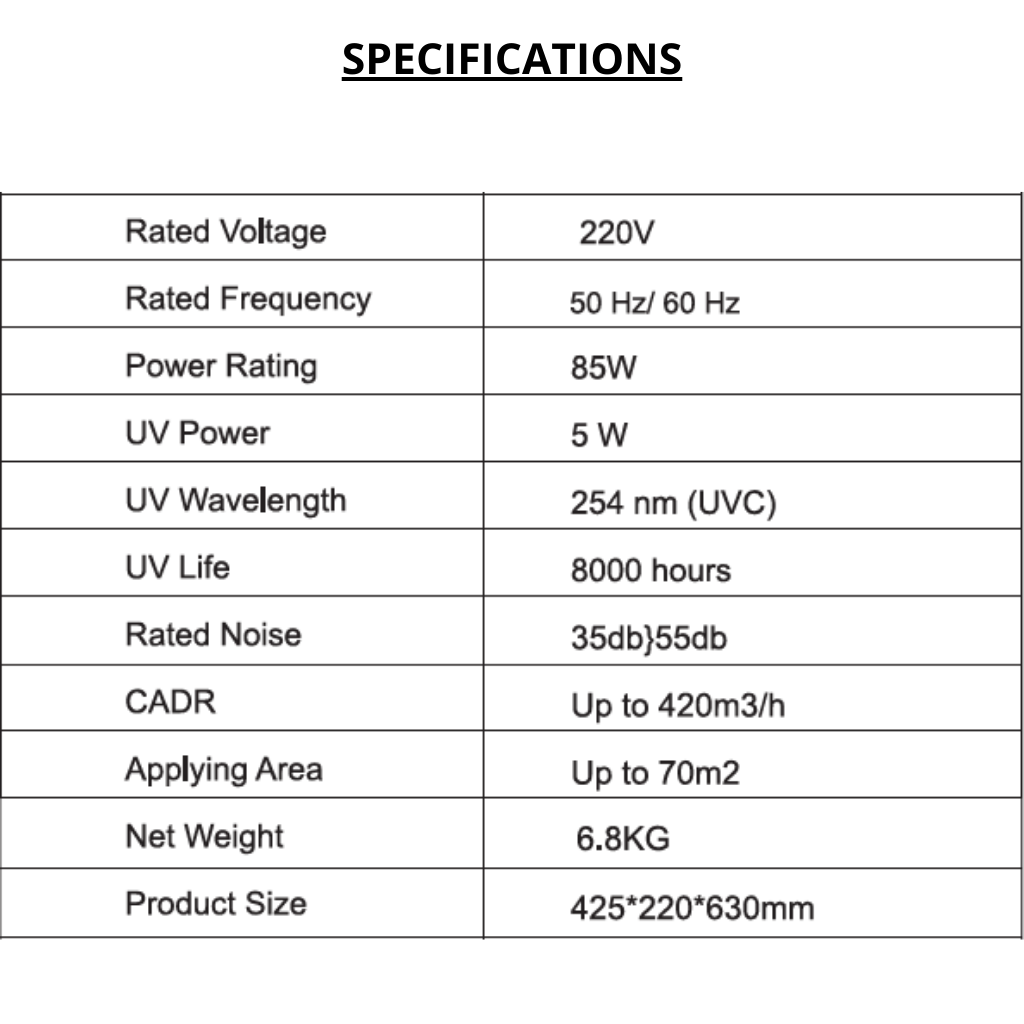 ● Improves air quality and reduces airborne allergens, bacteria, viruses, and PM2.5 particles